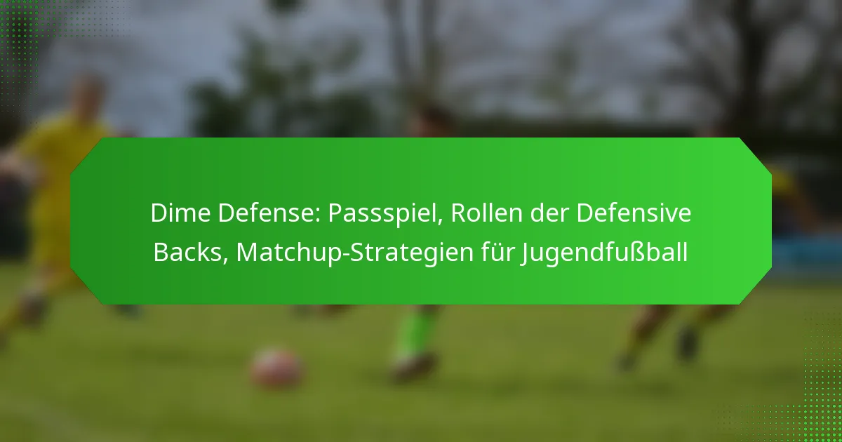 Dime Defense ist eine defensive Formation im Jugendfußball, die sechs Defensive Backs einsetzt, um Passspielzüge entgegenzuwirken. Diese Strategie ist besonders effektiv in Situationen, in denen die Offensive wahrscheinlich den Ball werfen wird, was eine bessere Abdeckung gegen Receiver ermöglicht.